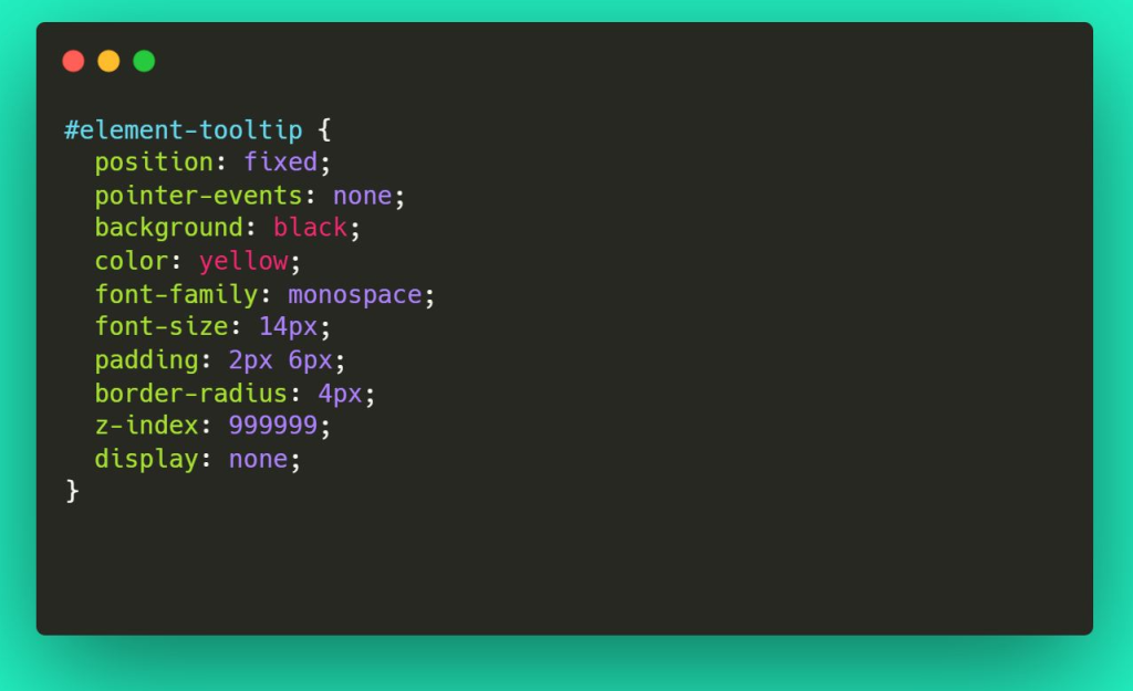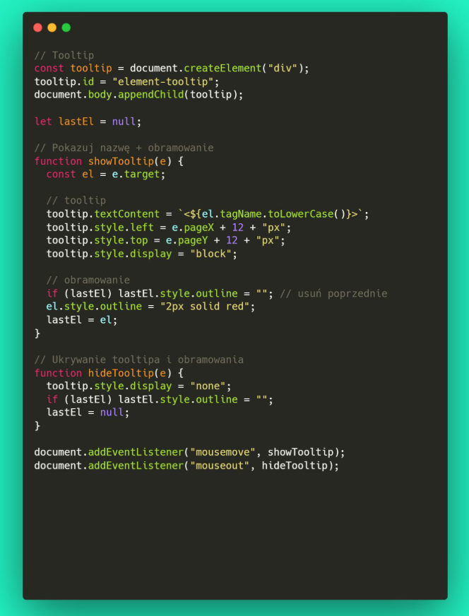 Poniżej zamieszczam przykład rozszerzenia które po najechaniu na dany element html wyświetla jego nazwę i w obramowaniu pokazuje gdzie element znajduje się na stronie